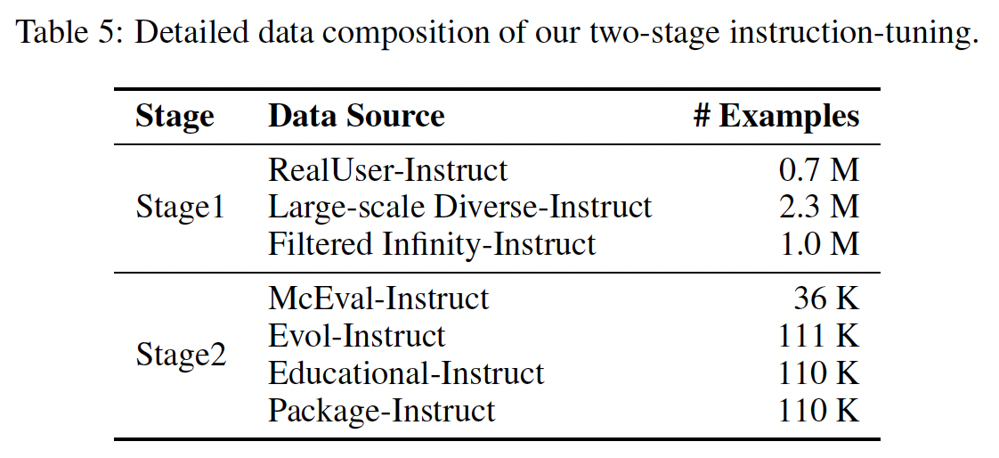 Open-source Training Data To enhance the model training, we collect the open-source instruction corpora from the websites, including Evol-Instruct, Infinity-Instruct, McEval. Additionally, we sample real user queries from WildChat-1M and Code-290k-ShareGPT. For low-quality responses, we employ a robust LLM to regenerate the content, enhancing the overall data quality.