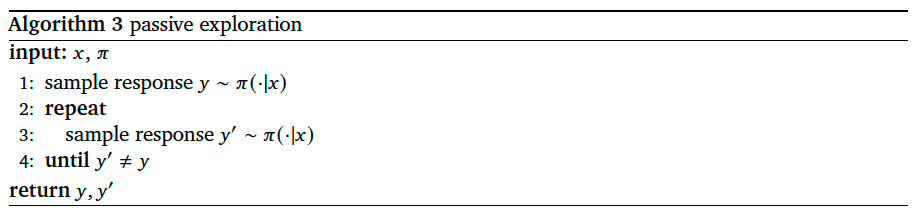 When selecting a pair of responses, the agent can make use of a reward model that has been trained on feedback to all or some past queries. Passive exploration forgoes this opportunity.