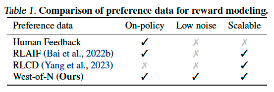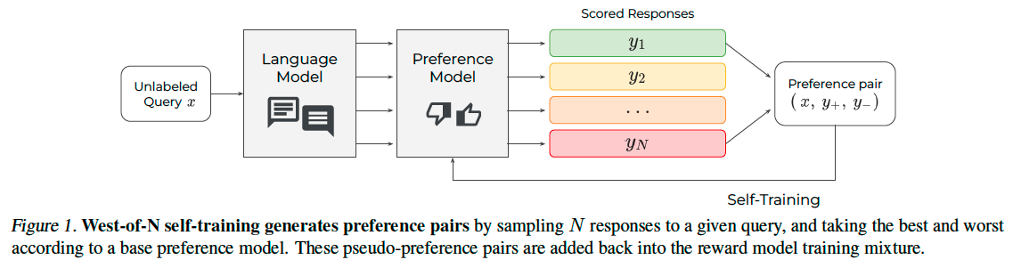 In practice, this objective can be approximated by sampling a pool of \(N\) candidate outputs from the policy and identify the best- and worst-scored ones.